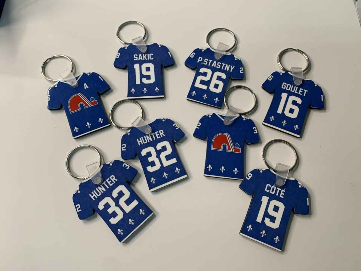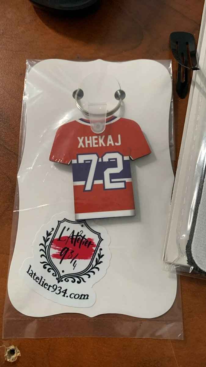 Découvrez notre porte-clé Chandail Hockey NHL personnalisé, une création artisanale parfaite pour les passionnés de hockey. Confectionné avec soin dans notre atelier québécois, ce porte-clé unique reproduit un authentique chandail de la NHL avec VOTRE nom et VOTRE numéro préféré.